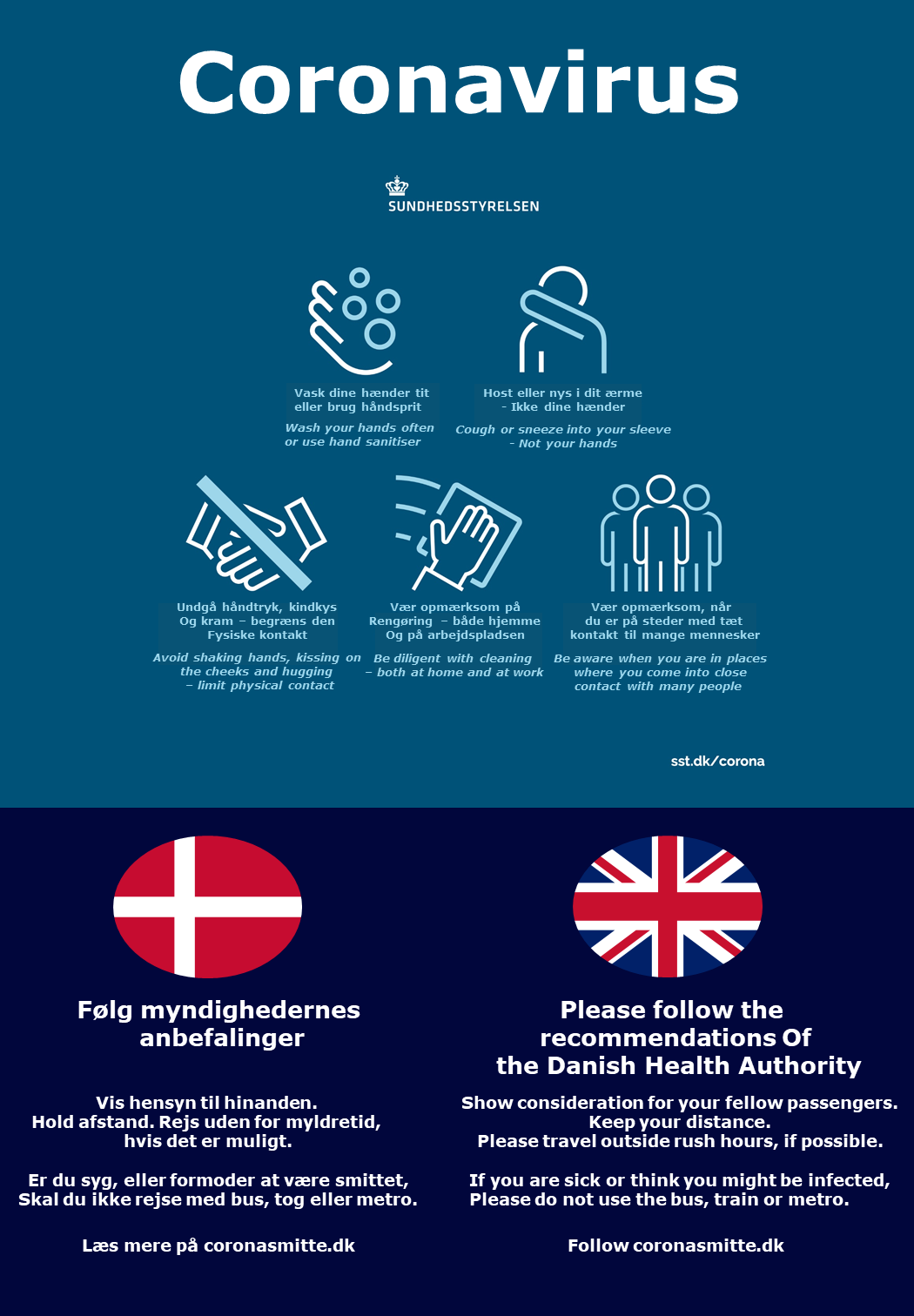Læs om de nye restriktioner på coronasmitte.dk. Hold dig opdateret på coronasmitte.dk. Læs mere og hold dig opdateret på www.coronasmitte.dk. Læs flere bilnyheder og gode tips til bilister på fdm.dk. Latest update on the coronavirus in 25 languages.